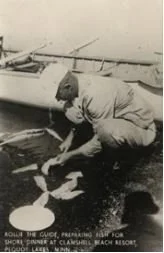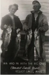George was a mason who was working in Columbia Heights, but his family’s homestead was on the Whitefish Chain. When his dad told him about an opportuity to buy Clamshell Beach Resort and return to his home and his love of fishing, they quickly jumped at the opportunity. George and Agnes are featured in the photo - his love of fishing is clearly evident.