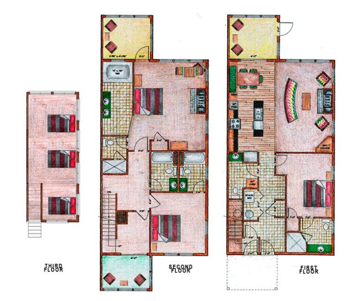 BEDROOM 4 - Third Floor: 3 Twin Beds / 3 Twin Trundle Beds