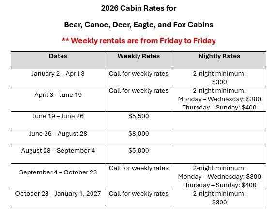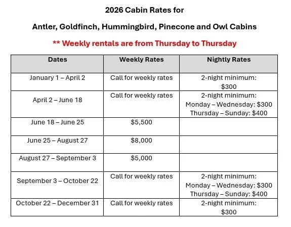 View photos and learn about the features, check-in days, rates, and availability of these 10 cabins below and then book your stay.