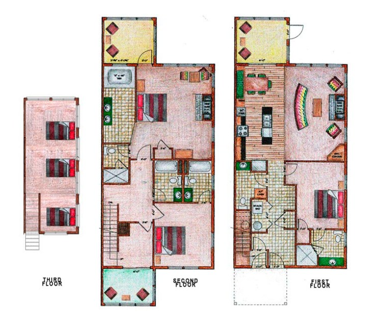 BEDROOM 4 - Third Floor: Loft Bedroom with 3Twin Beds & 3 Twin Trundle Beds